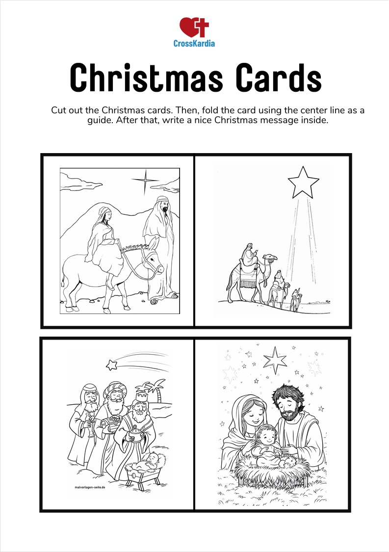 2. Suggestive Christmas Cards (To Color and Give): Encourage generosity and creativity! Cards ready for children to color and give to special people, teaching the value of giving from the heart.